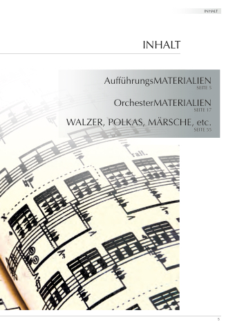 INHALT INHALT AufführungsMATERIALIEN SEITE 5 OrchesterMATERIALIEN SEITE 17 WALZER, POLKAS, MÄRSCHE, etc. SEITE 55 5