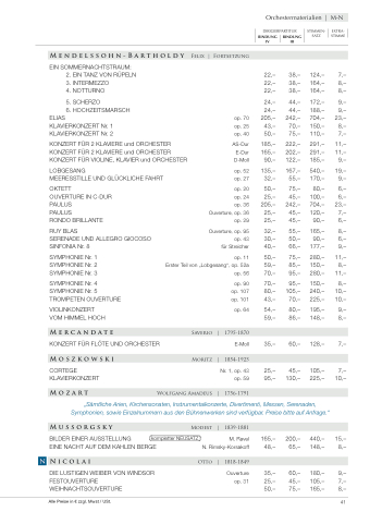 „Sämtliche Arien, Kirchensonaten, Instrumentalkonzerte, Divertimenti, Messen, Serenaden, Symphonien, sowie Einzelnummern aus den Bühnenwerken sind verfügbar. Preise bitte auf Anfrage.“