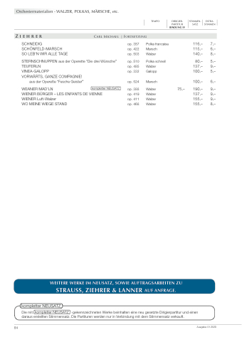 WEITERE WERKE IM NEUSATZ, SOWIE AUFTRAGSARBEITEN ZU STRAUSS, ZIEHRER & LANNER AUF ANFRAGE.